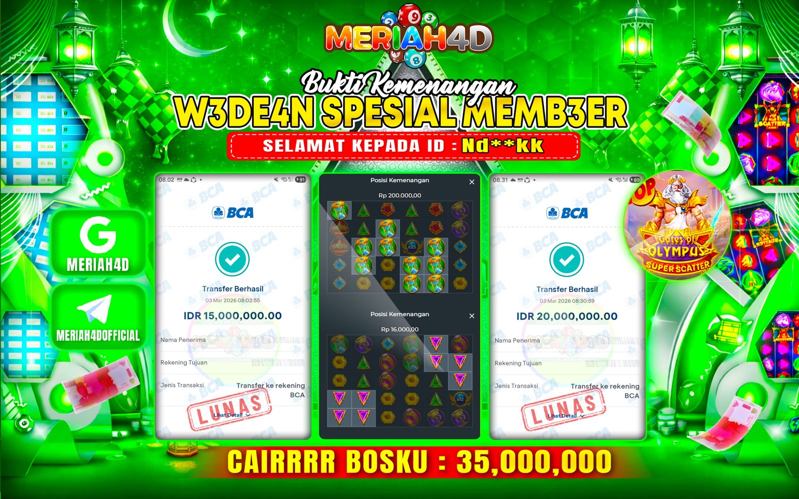 Selamat Kepada ID : ND**KK Atas Withdraw Rp. 35.000.000 Juta Hari ini. Ditunggu Withdraw Selanjutnya dan ajak juga teman temannya bergabung di Meriah4d