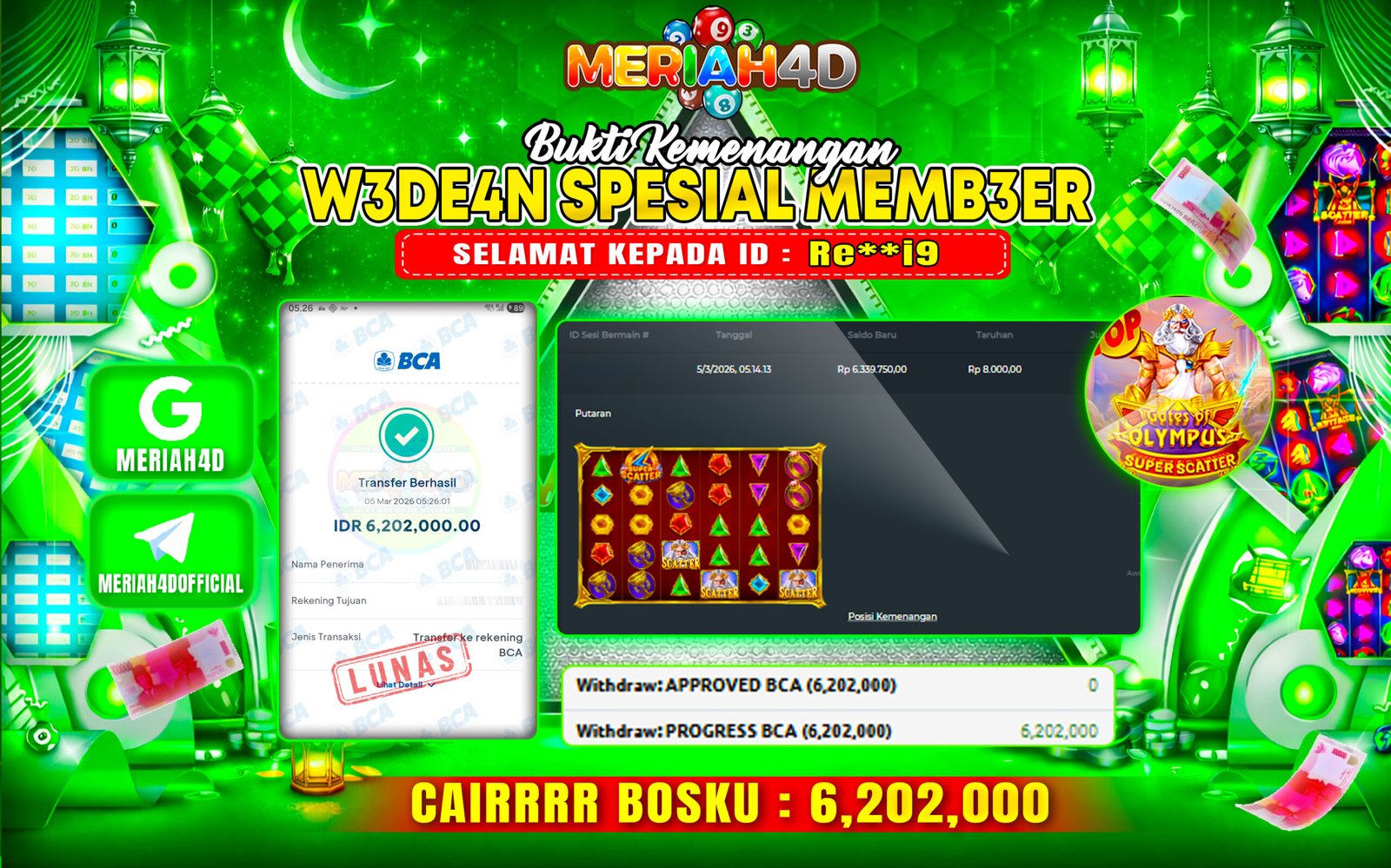 Selamat Kepada ID : RE**I9 Atas Withdraw Rp. 6.202.000 Juta Hari ini. Ditunggu Withdraw Selanjutnya dan ajak juga teman temannya bergabung di Meriah4d