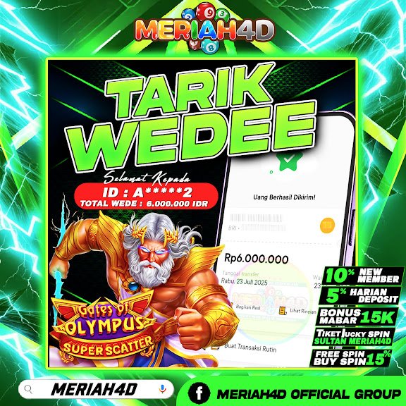 Selamat Kepada ID : A*****2 Atas Withdraw Rp. 6.000.000 Juta Hari ini. Ditunggu Withdraw Selanjutnya dan ajak juga teman temannya bergabung di Meriah4d