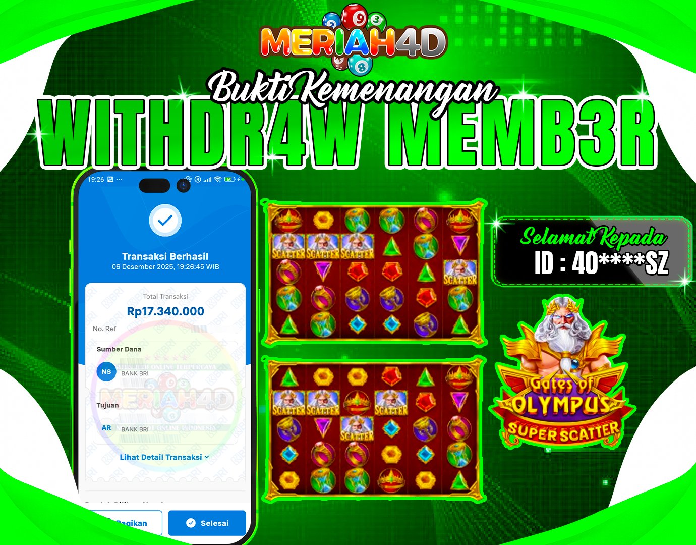 MERIAH4D Bukti Kemenangan SLOT GATES OF OLYMPUS SUPER SCATTER