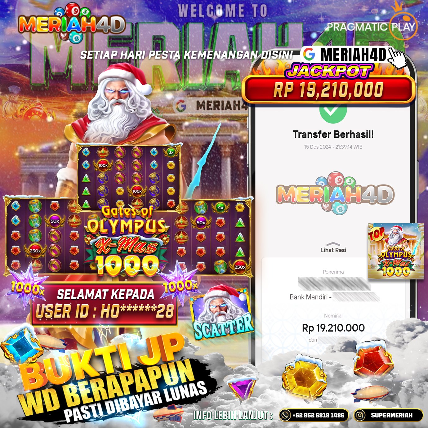 MERIAH4D Bukti Kemenangan Slot GATES OF OLYMPUS X MAS 1000