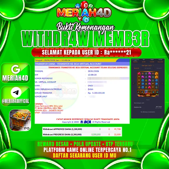 Selamat Kepada ID : RA****21 Atas Withdraw Rp. 5.300.000 Juta Hari ini. Ditunggu Withdraw Selanjutnya dan ajak juga teman temannya bergabung di Meriah4d