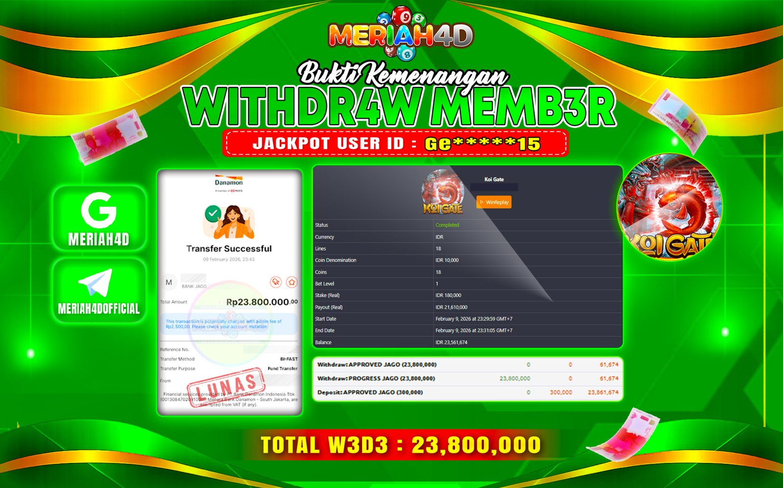 MERIAH4D Bukti Kemenangan SLOT KOI GATE