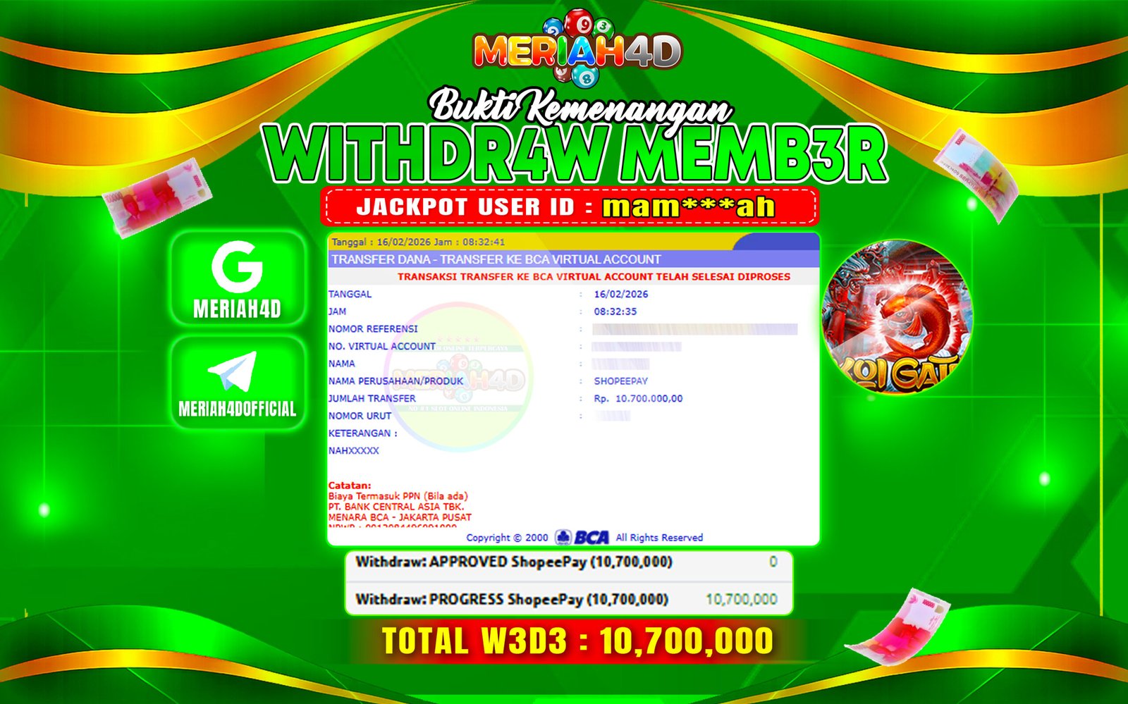 MERIAH4D Bukti Kemenangan SLOT KOI GATE