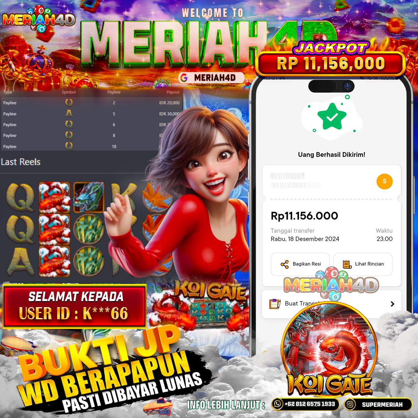 Selamat Kepada ID : K******66 Atas Withdraw Rp. 11.156.000 Juta Hari ini. Ditunggu Withdraw Selanjutnya dan ajak juga teman temannya bergabung di Meriah4d