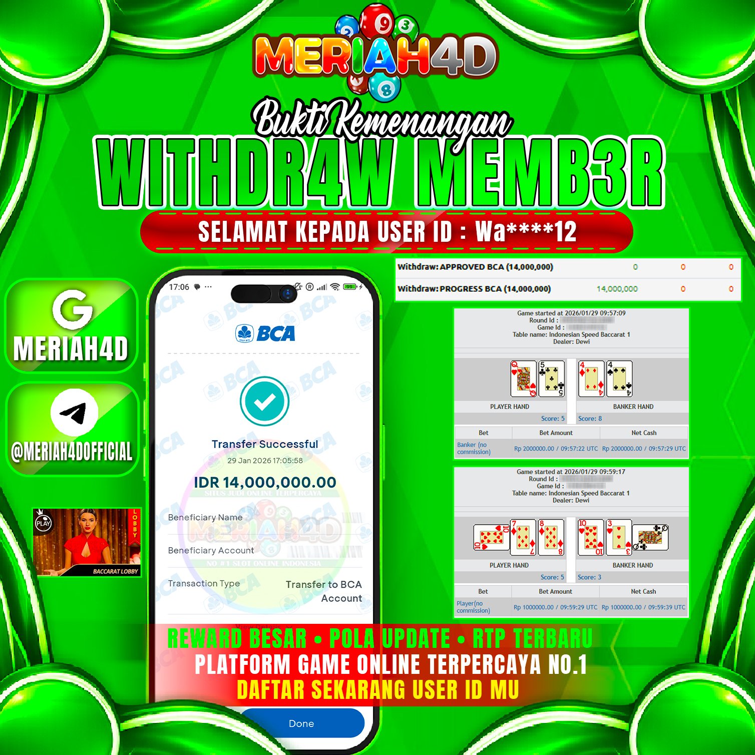 MERIAH4D Bukti Kemenangan SLOT LIVE CASINO BACCARAT LOBBY