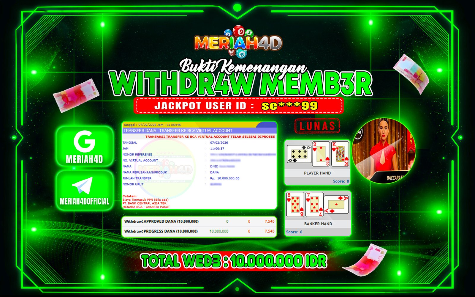 MERIAH4D Bukti Kemenangan SLOT LIVE CASINO BACCARAT LOBBY