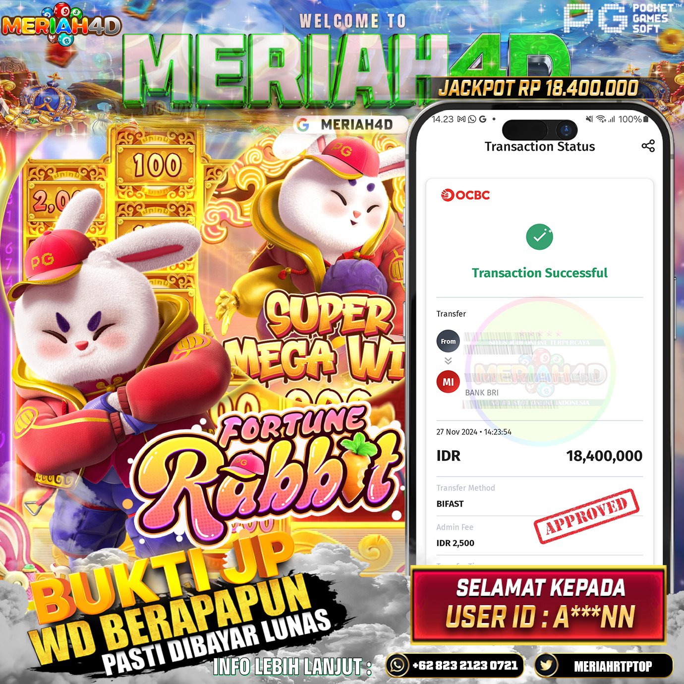 Selamat Kepada Id : A*****NN Atas Withdraw Rp. 18.400.000 Juta Hari ini. Ditunggu Withdraw Selanjutnya dan ajak juga teman temannya bergabung di Meriah4d