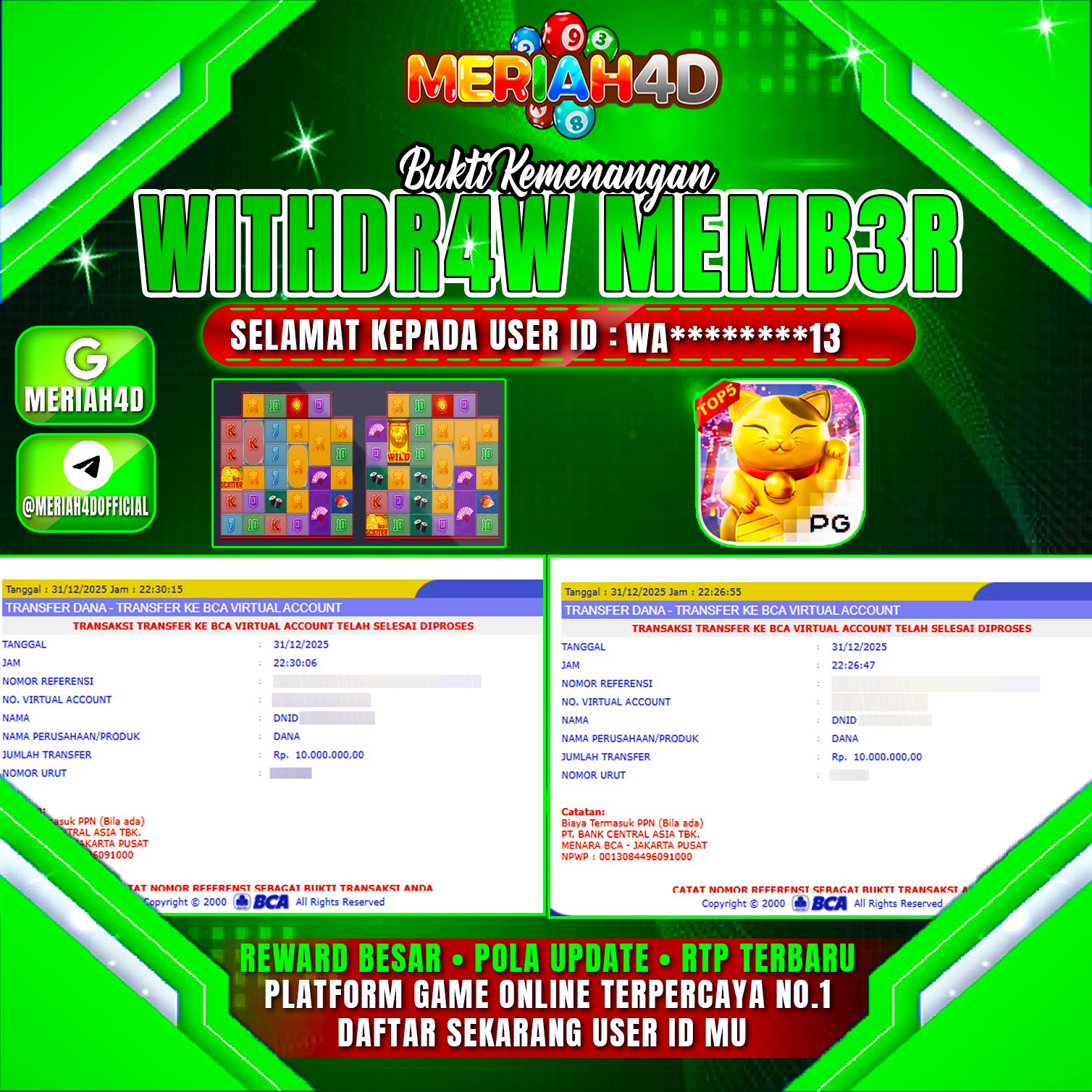 MERIAH4D Bukti Kemenangan SLOT LUCKY NEKO