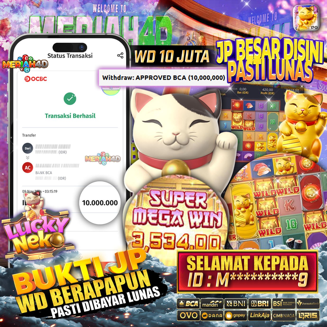MERIAH4D Bukti Kemenangan Slot LUCKY NEKO