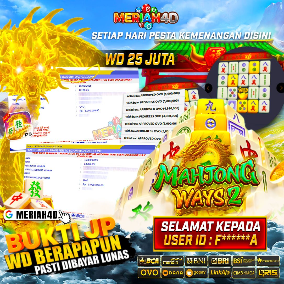 MERIAH4D Bukti Kemenangan SLOT MAHJONG WAYS 2