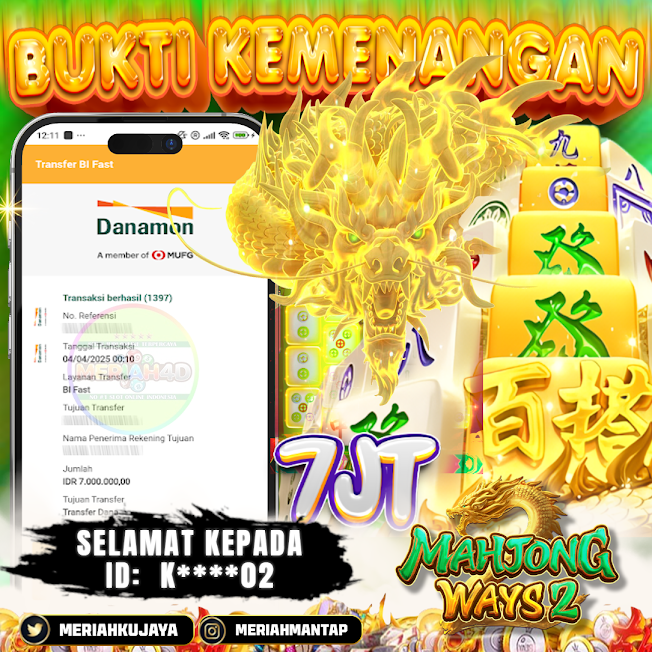 MERIAH4D Bukti Kemenangan SLOT MAHJONG WAYS 2