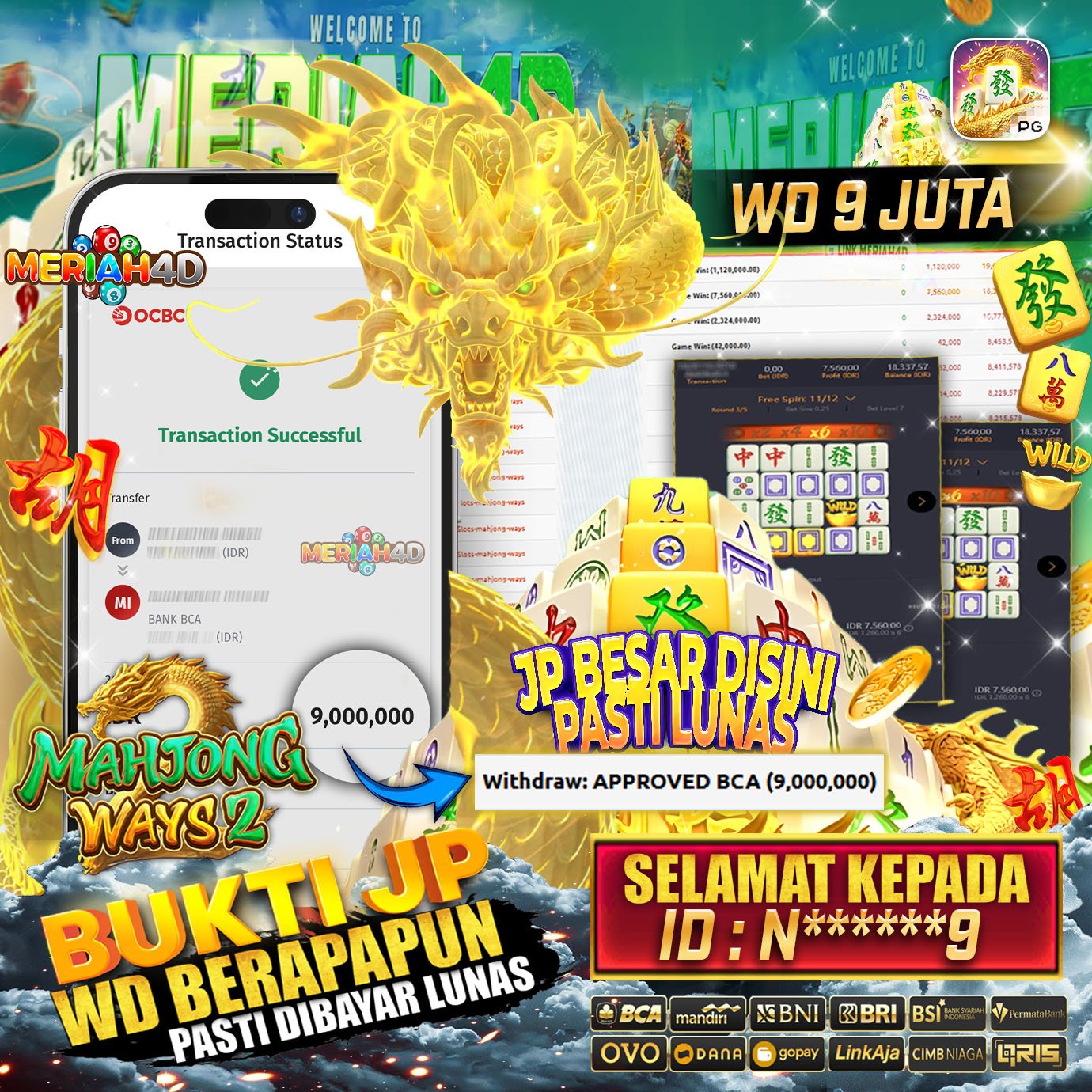 Selamat Kepada Id : N******9 Atas Withdraw Rp. 9.000.000 Juta Hari ini. Ditunggu Withdraw Selanjutnya dan ajak juga teman temannya bergabung di Meriah4d