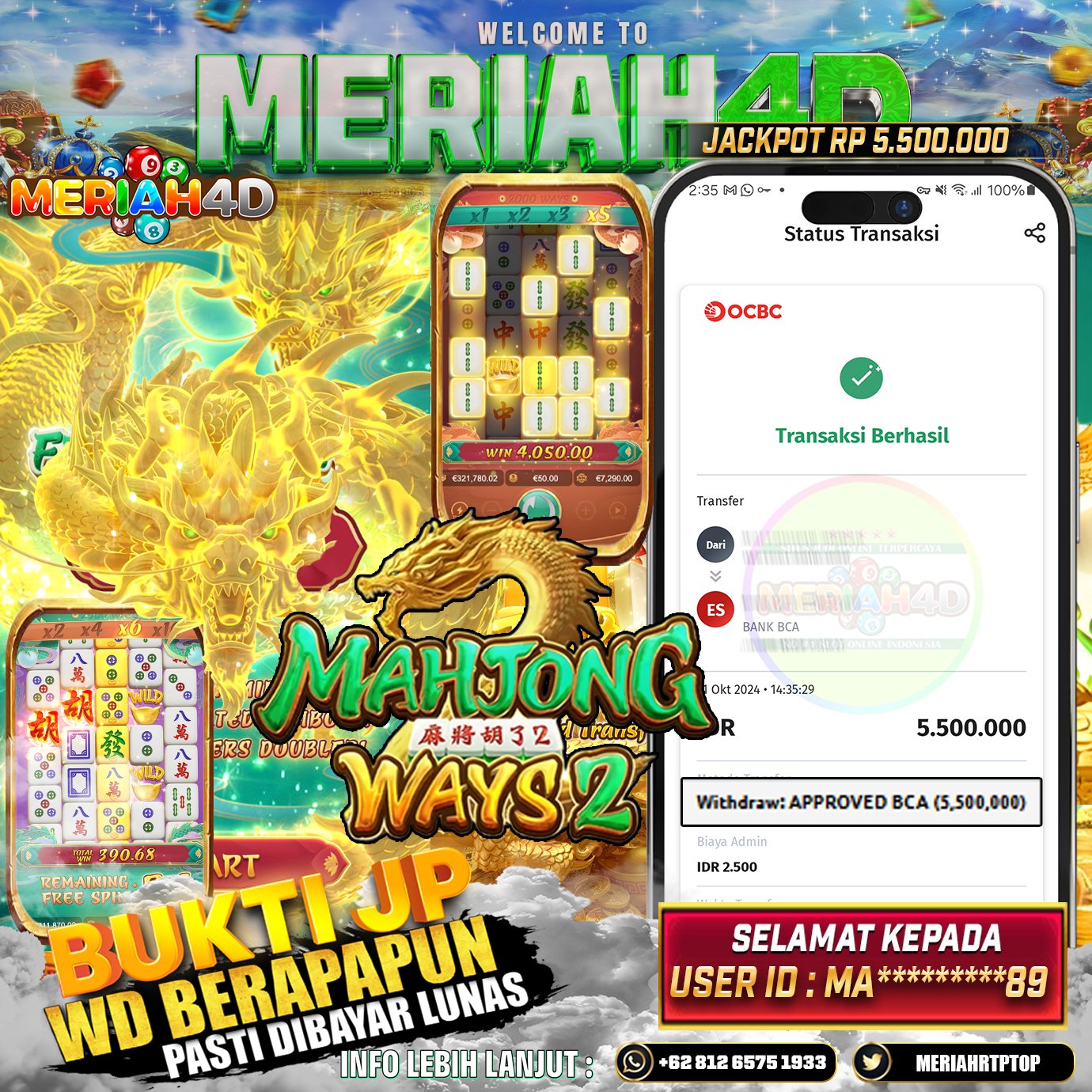 MERIAH4D Bukti Kemenangan Slot MAHJONG WAYS 2