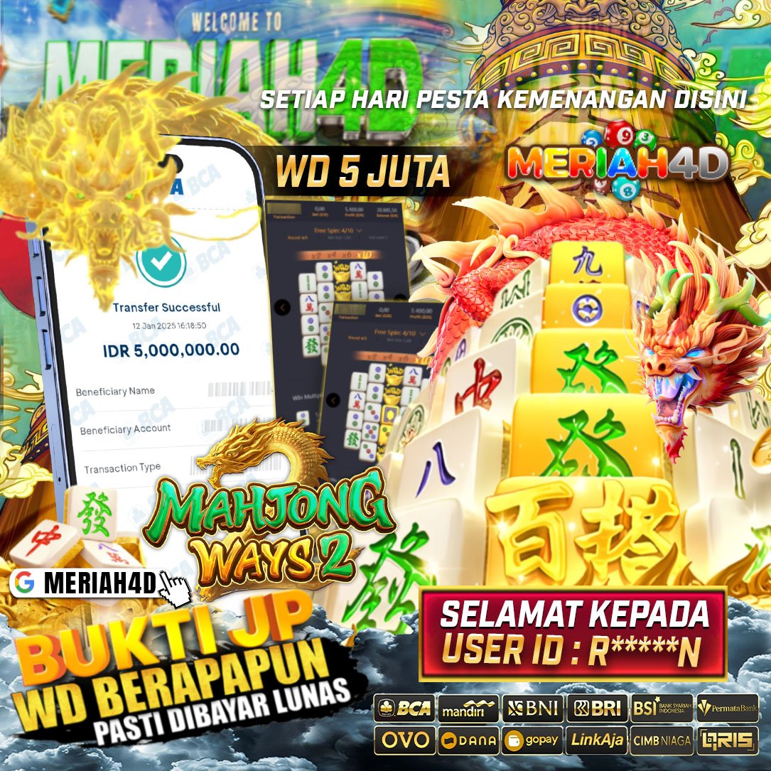 Selamat Kepada ID : R******N Atas Withdraw Rp. 5.000.000 Juta Hari ini. Ditunggu Withdraw Selanjutnya dan ajak juga teman temannya bergabung di Meriah4d