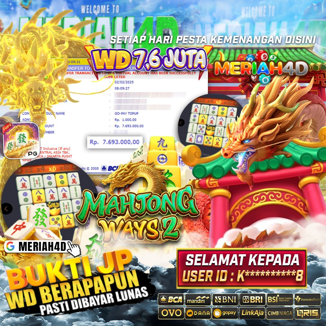 Selamat Kepada ID : K******8 Atas Withdraw Rp. 7.600.000 Juta Hari ini. Ditunggu Withdraw Selanjutnya dan ajak juga teman temannya bergabung di Meriah4d