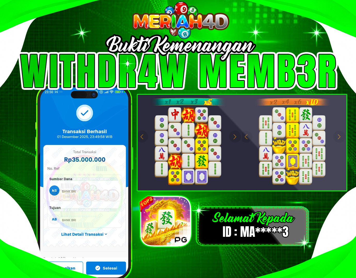 MERIAH4D Bukti Kemenangan SLOT MAHJONG WAYS