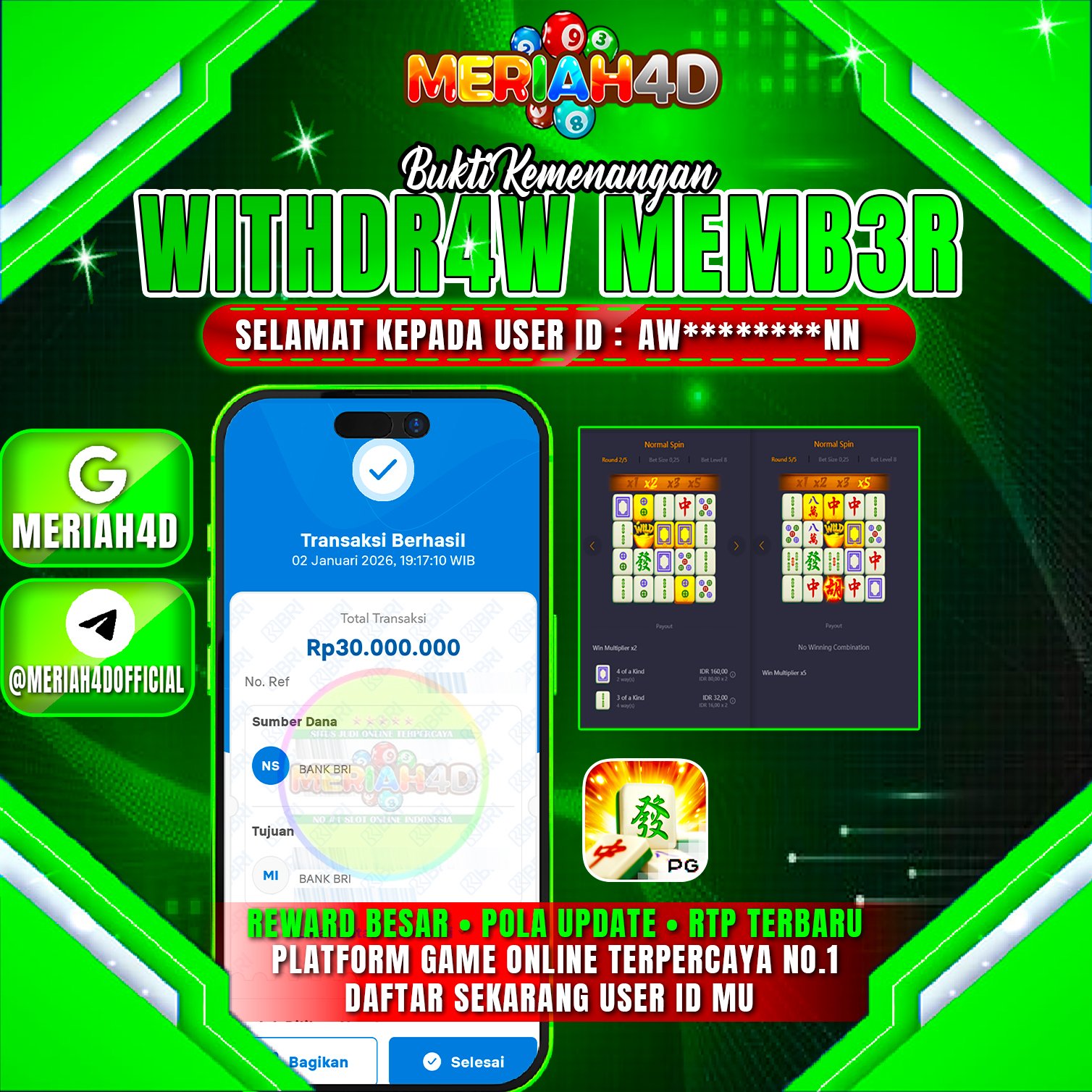 MERIAH4D Bukti Kemenangan SLOT MAHJONG WAYS