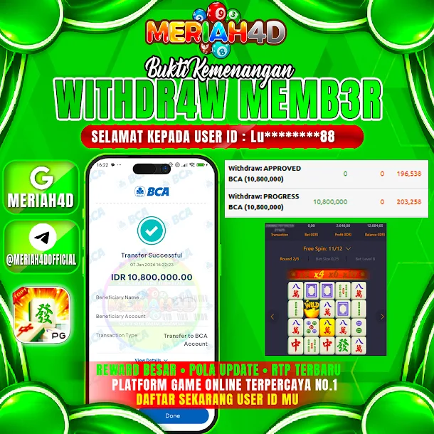 Salah satu keunggulan dari Meriah4D adalah keamanan dan kenyamanan dalam bertransaksi. Dengan menggunakan teknologi enkripsi canggih, pemain dapat merasa aman melakukan transaksi keuangan di situs ini. Platform ini juga memberikan dukungan pelanggan 24 jam, yang semakin meningkatkan pengalaman bermain bagi pengguna