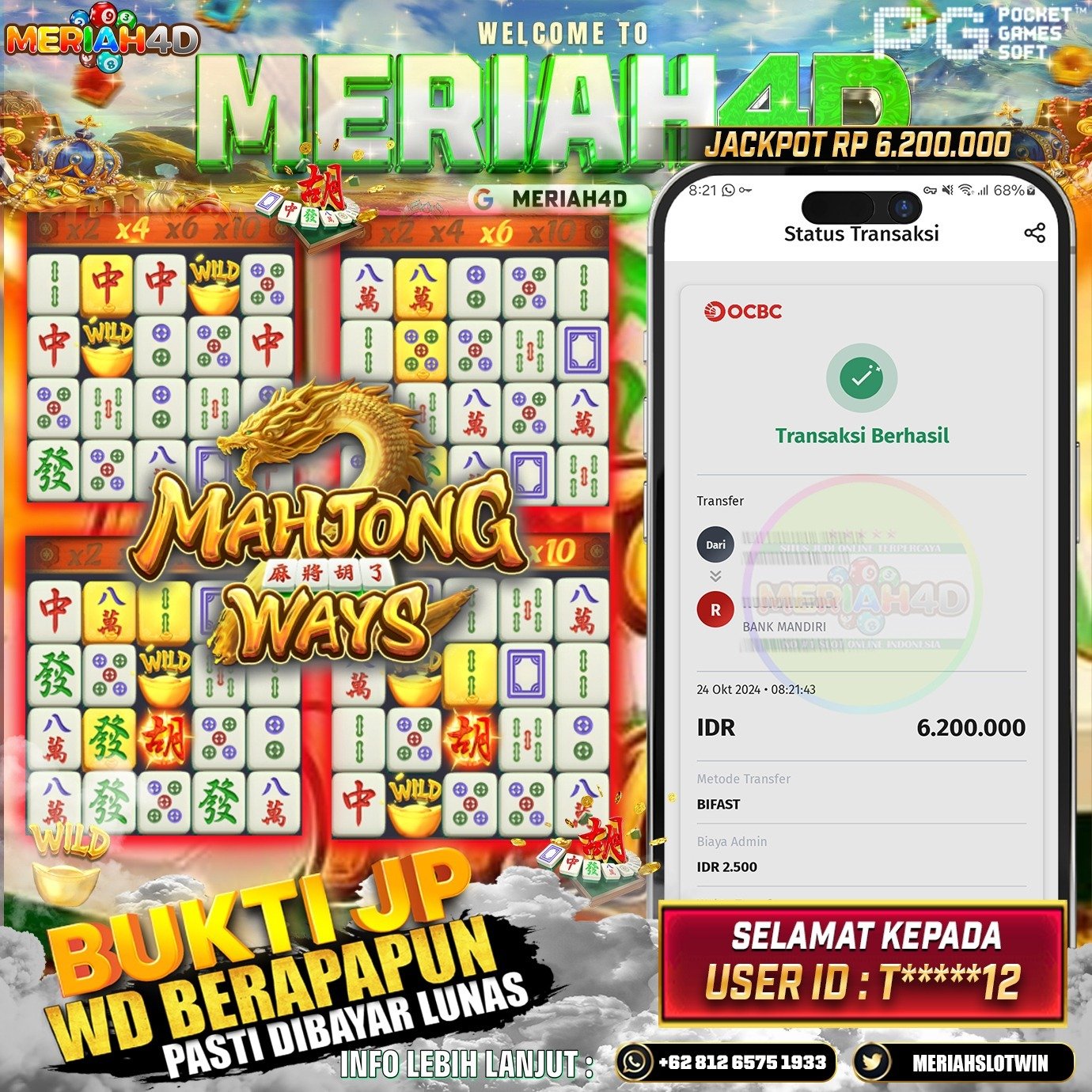 Selamat Kepada Id : T******12 Atas Withdraw Rp. 6.200.000 Juta Hari ini. Ditunggu Withdraw Selanjutnya dan ajak juga teman temannya bergabung di Meriah4d