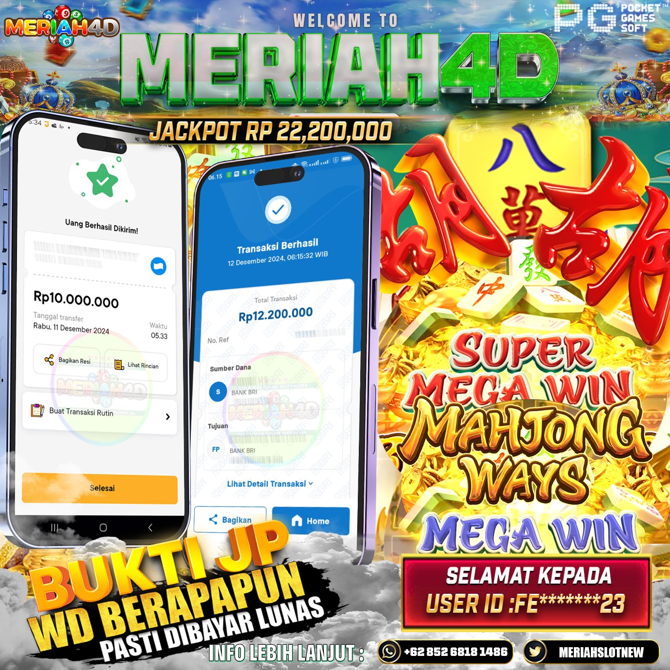 Selamat Kepada ID : FE*******23 Atas Withdraw Rp. 22.200.000 Juta Hari ini. Ditunggu Withdraw Selanjutnya dan ajak juga teman temannya bergabung di Meriah4d