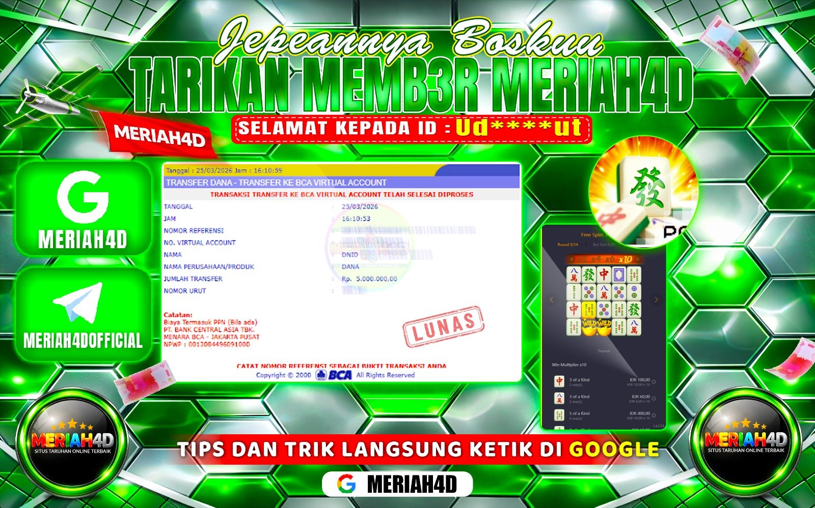 MERIAH4D Bukti Kemenangan SLOT MAHJONG WAYS
