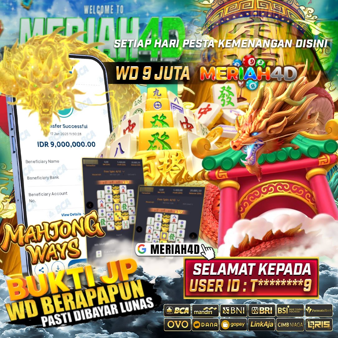 Selamat Kepada ID : T******9 Atas Withdraw Rp. 9.000.000 Juta Hari ini. Ditunggu Withdraw Selanjutnya dan ajak juga teman temannya bergabung di Meriah4d