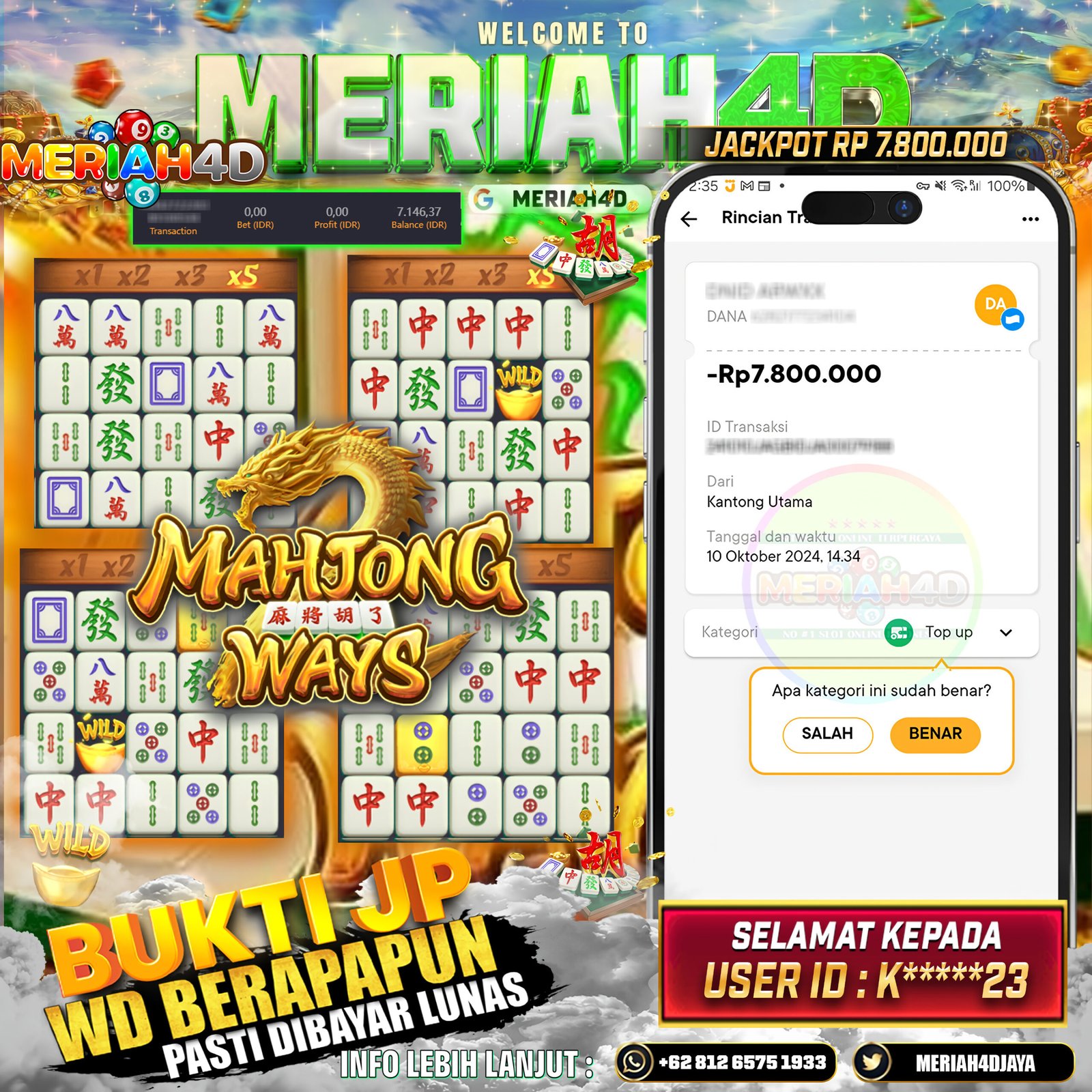 MERIAH4D Bukti Kemenangan Slot MAHJONG WAYS