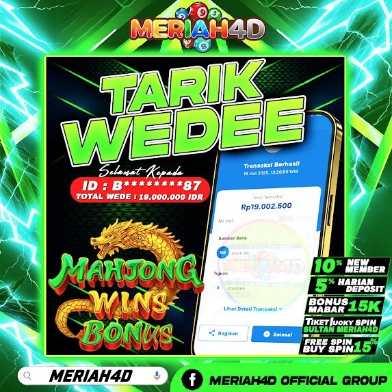 Selamat Kepada ID : B*******87 Atas Withdraw Rp. 19.000.000 Juta Hari ini. Ditunggu Withdraw Selanjutnya dan ajak juga teman temannya bergabung di Meriah4d