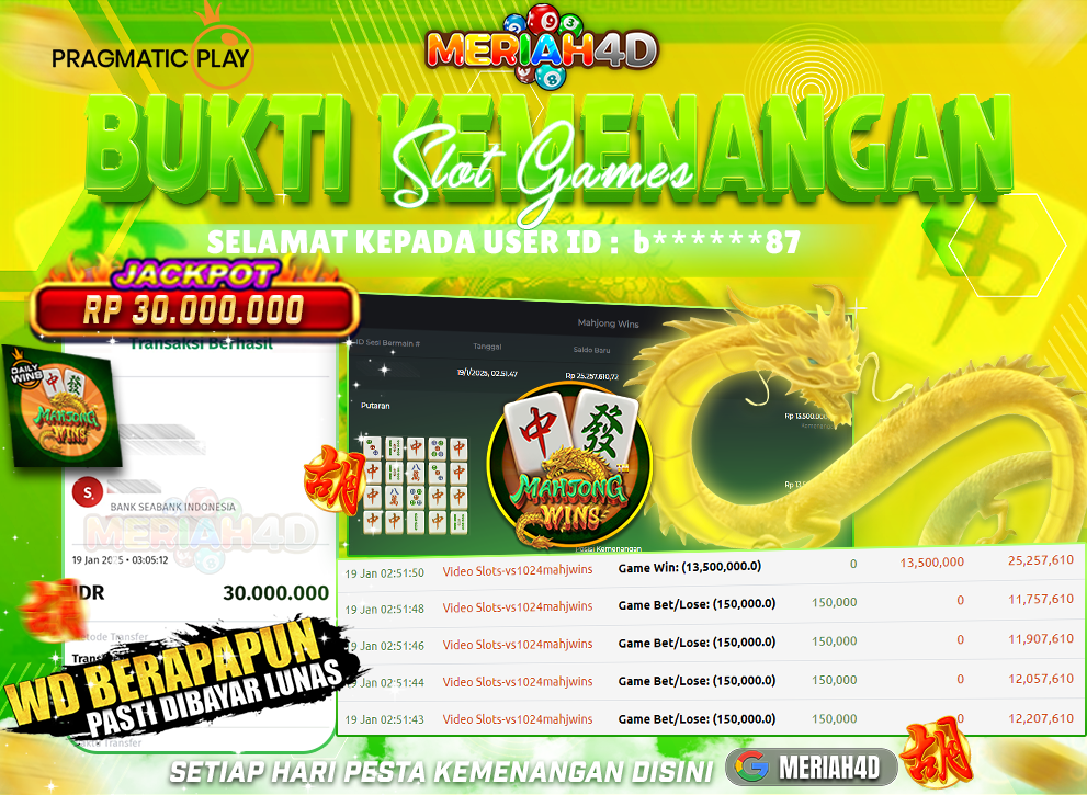 MERIAH4D Bukti Kemenangan Slot MAHJONG WAYS