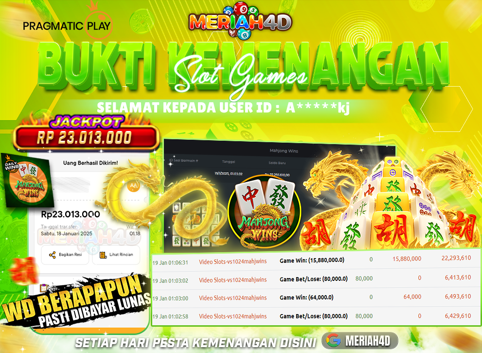 MERIAH4D Bukti Kemenangan Slot MAHJONG WINS