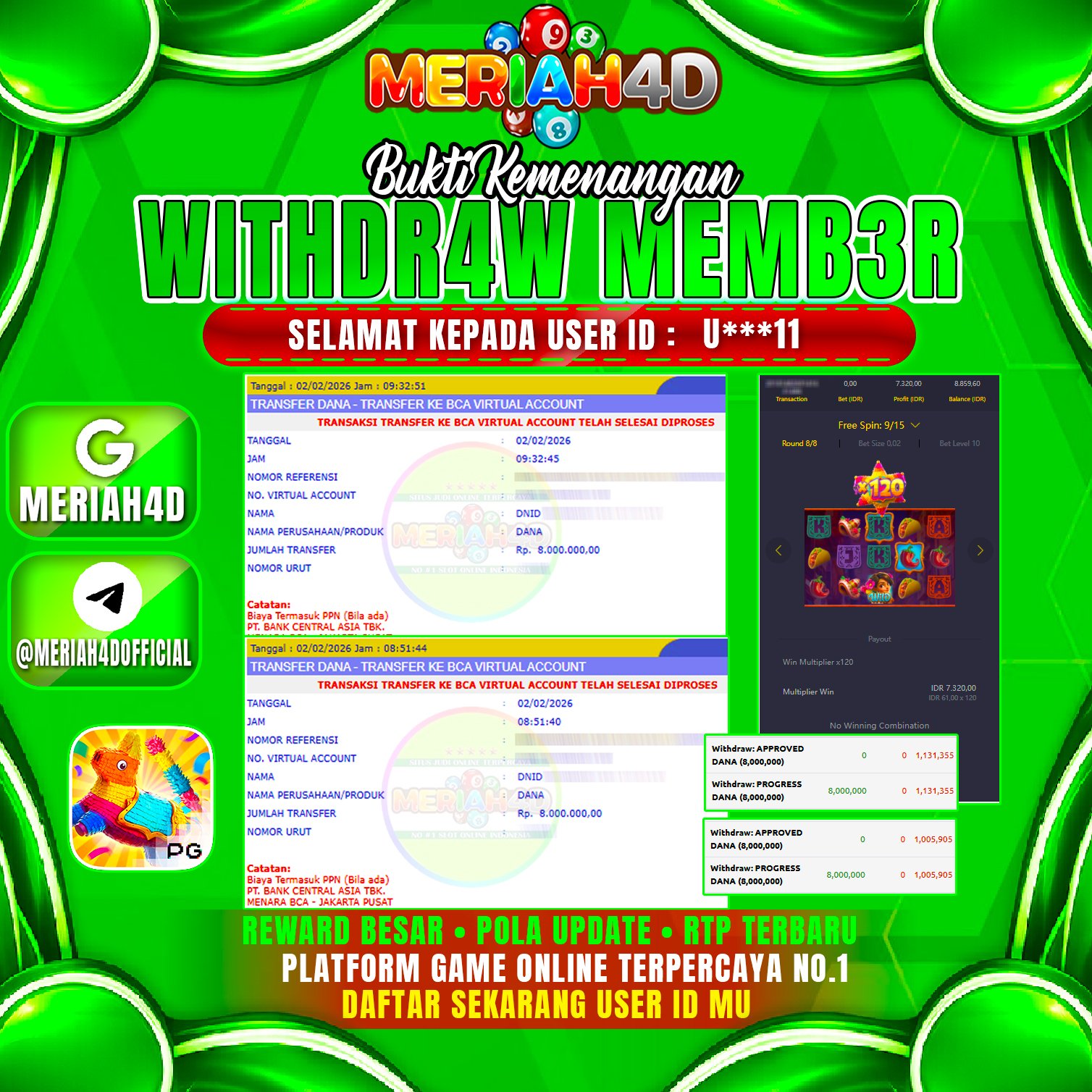 MERIAH4D Bukti Kemenangan SLOT PINATA WINS