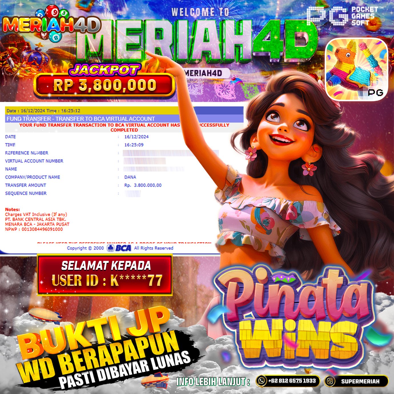 MERIAH4D Bukti Kemenangan Slot PINATA WINS