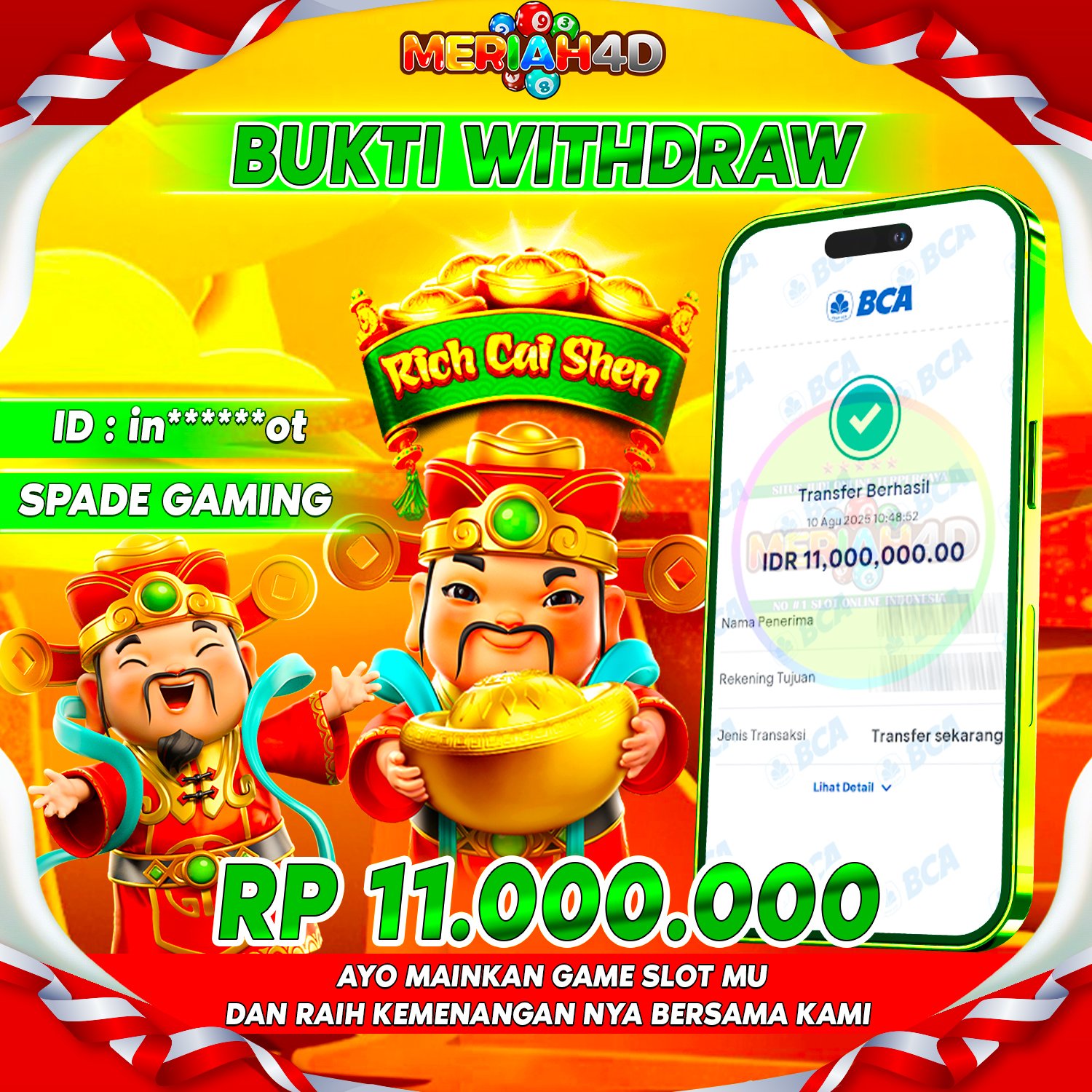 Selamat Kepada ID : IN*****OT Atas Withdraw Rp. 11.000.000 Juta Hari ini. Ditunggu Withdraw Selanjutnya dan ajak juga teman temannya bergabung di Meriah4d
