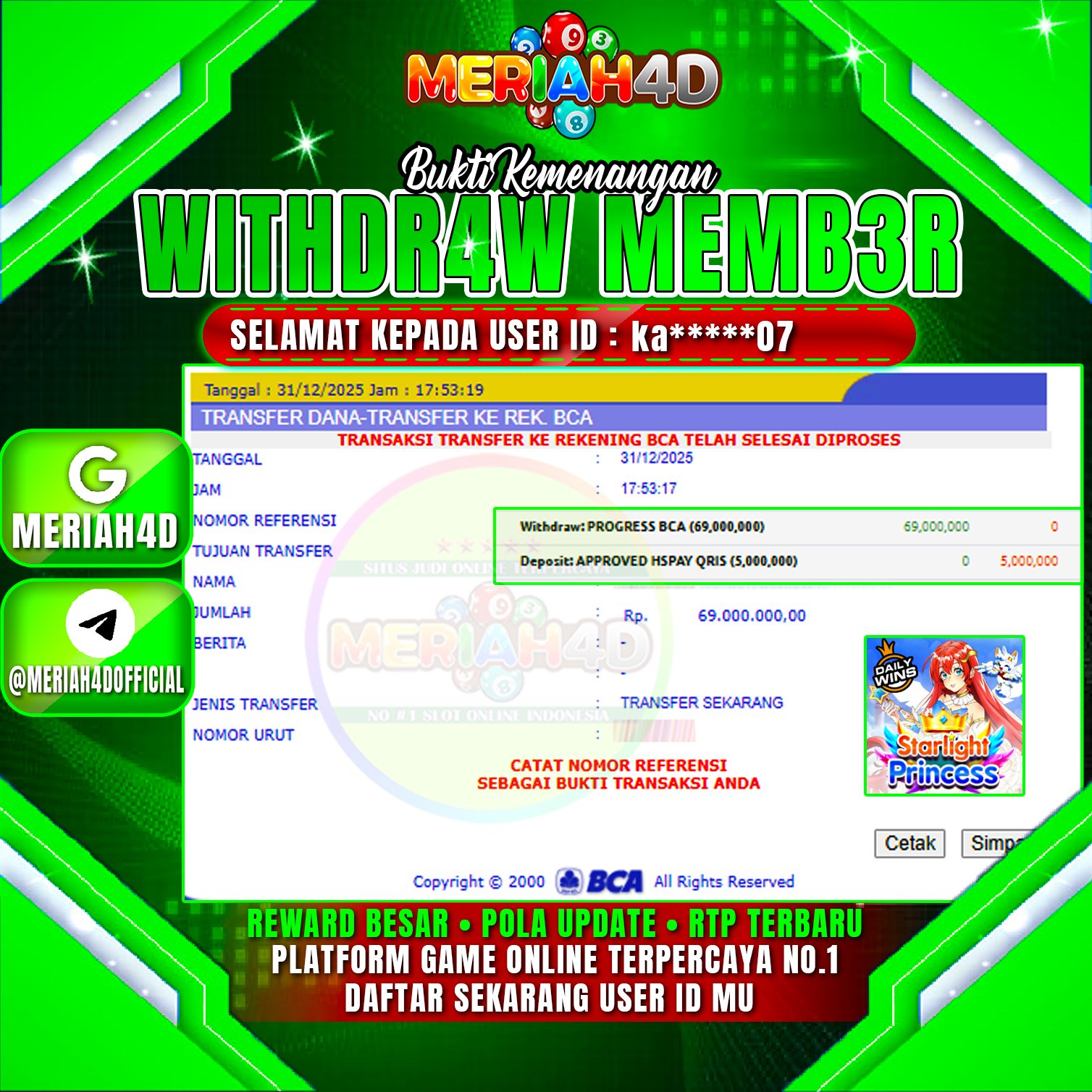 MERIAH4D Bukti Kemenangan SLOT STARLIGHT PRINCES