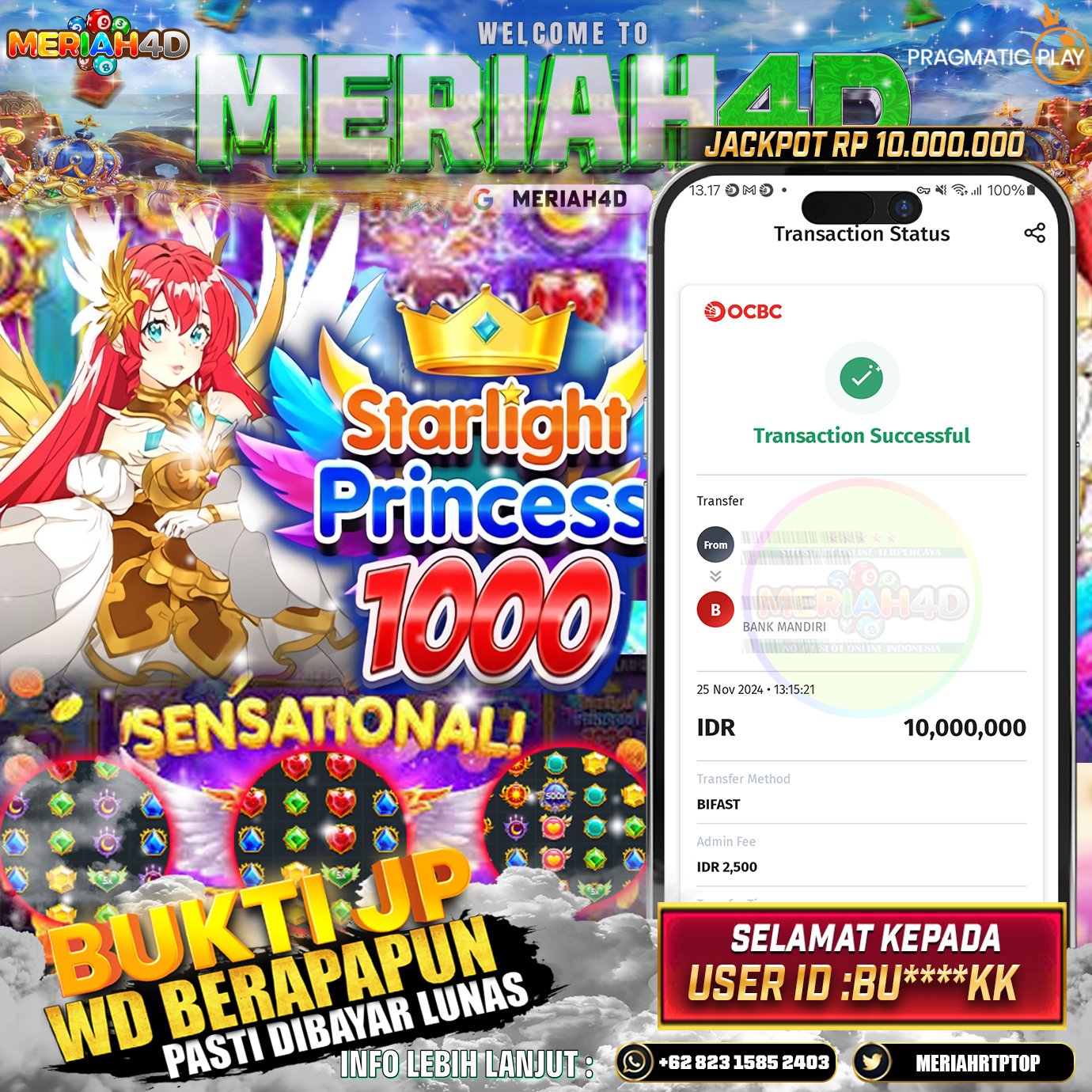 MERIAH4D Bukti Kemenangan Slot STARLIGHT PRINCESS 1000
