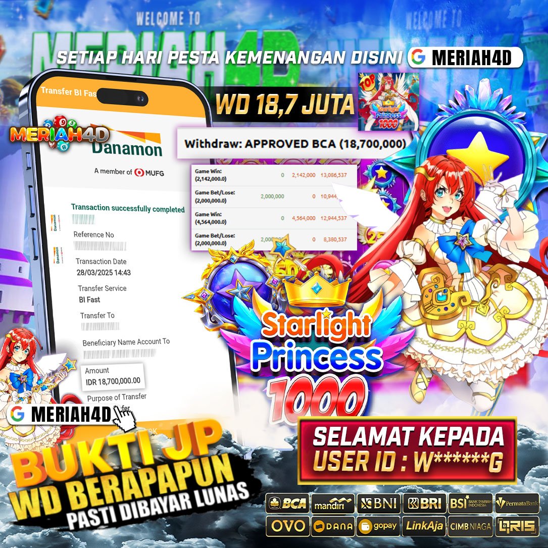 Selamat Kepada ID : W******G Atas Withdraw Rp. 18,700,000 Juta Hari ini. Ditunggu Withdraw Selanjutnya dan ajak juga teman temannya bergabung di Meriah4d