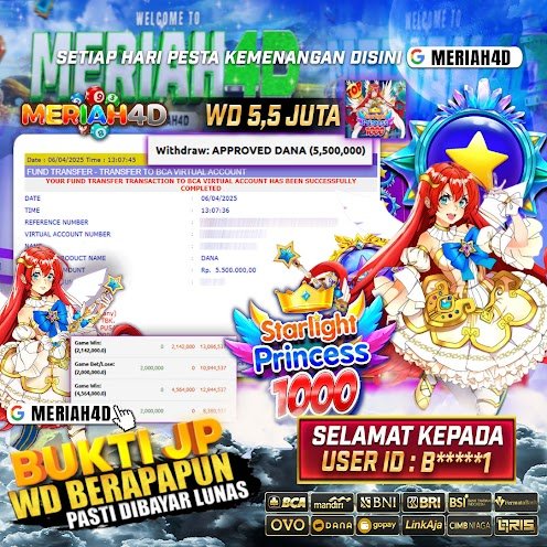 MERIAH4D Bukti Kemenangan SLOT STARLIGHT PRINCESS 1000