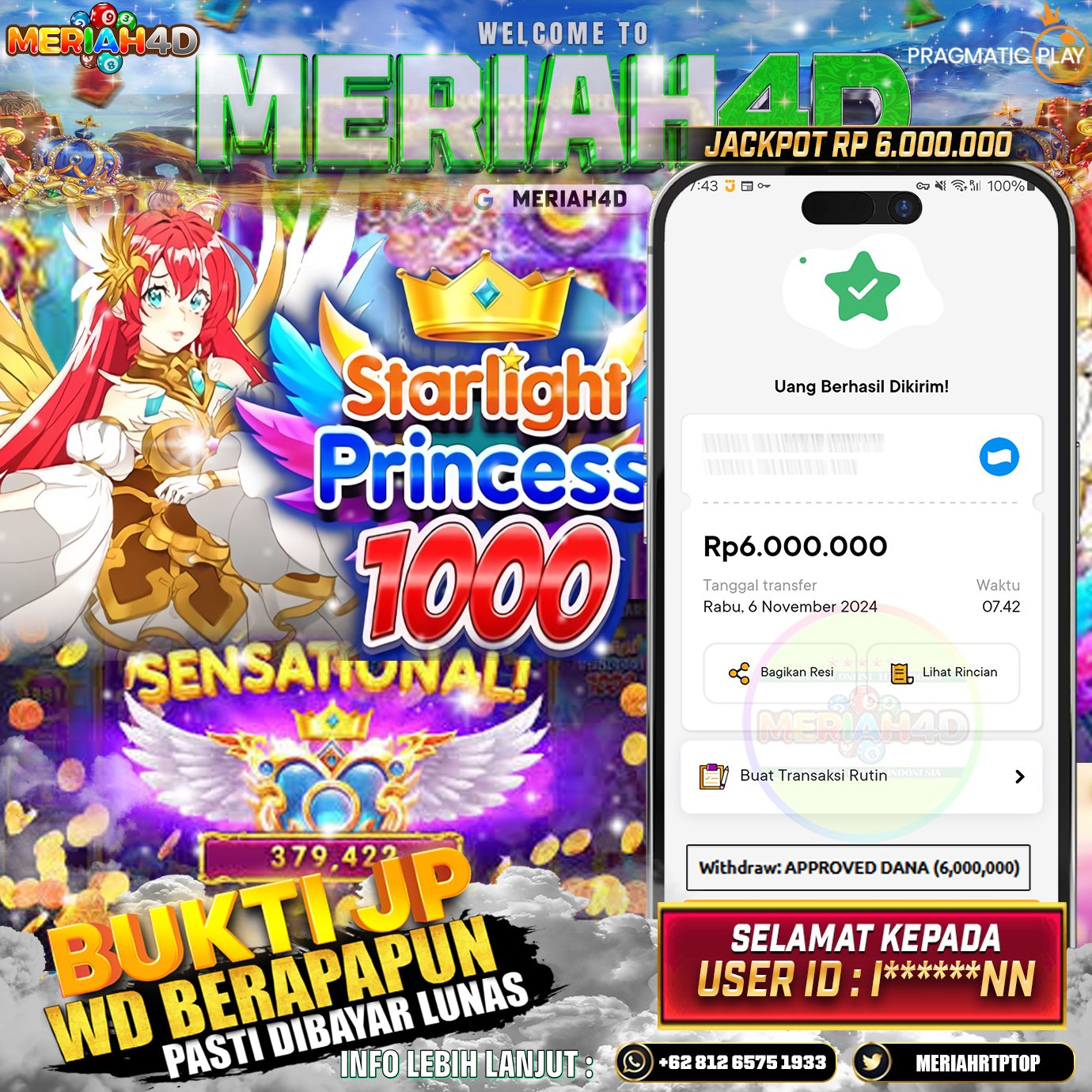MERIAH4D Bukti Kemenangan Slot STARLIGHT PRINCESS 1000