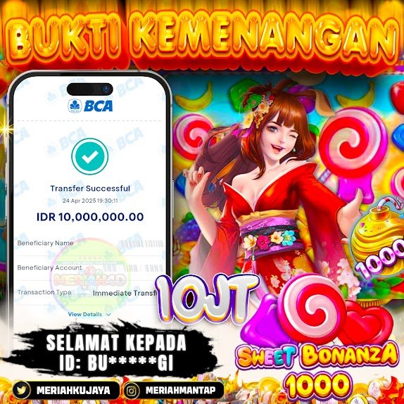 Selamat Kepada ID : BU*******GI Atas Withdraw Rp. 10,000,000 Juta Hari ini. Ditunggu Withdraw Selanjutnya dan ajak juga teman temannya bergabung di Meriah4d
