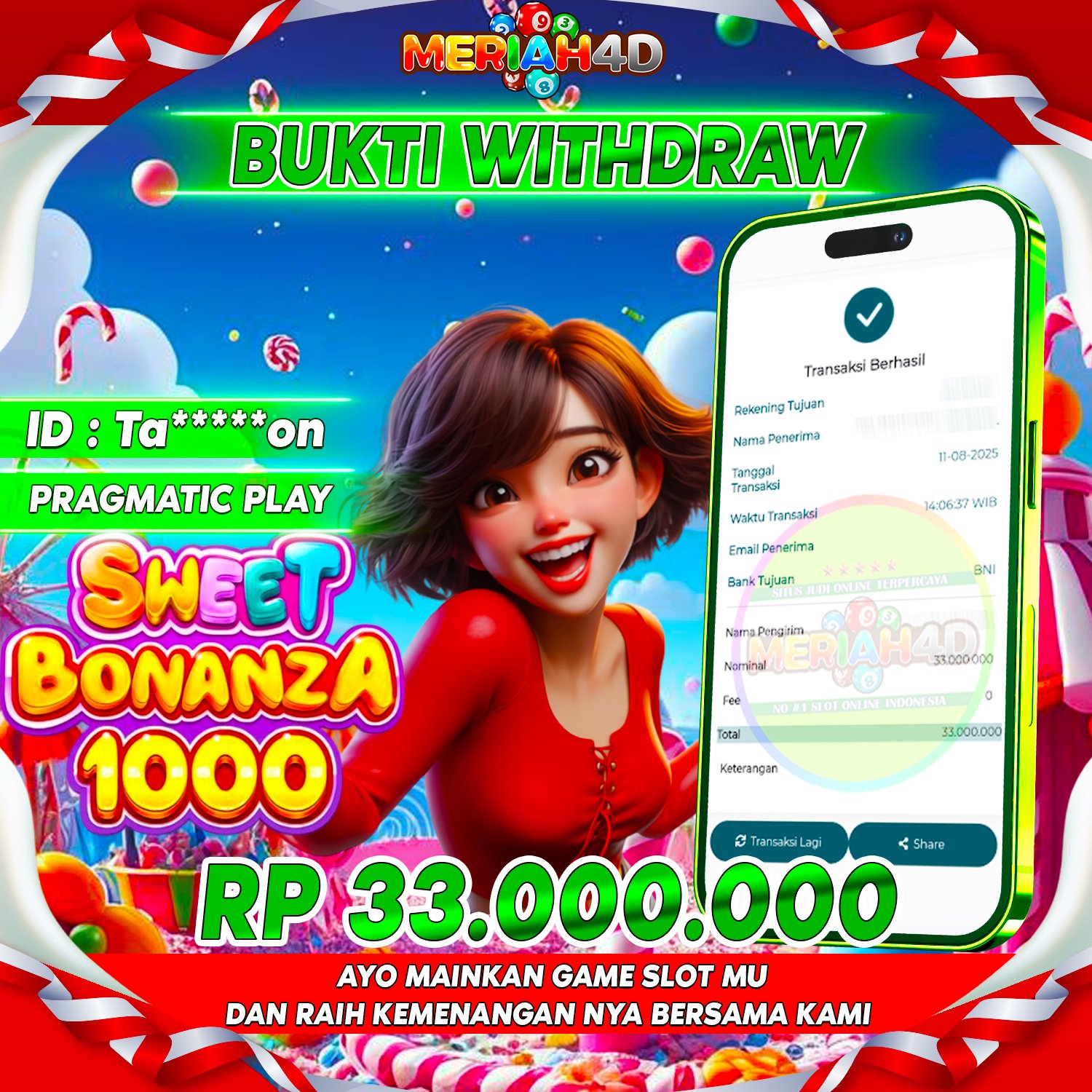 MERIAH4D Bukti Kemenangan SLOT SWEET BONANZA 1000