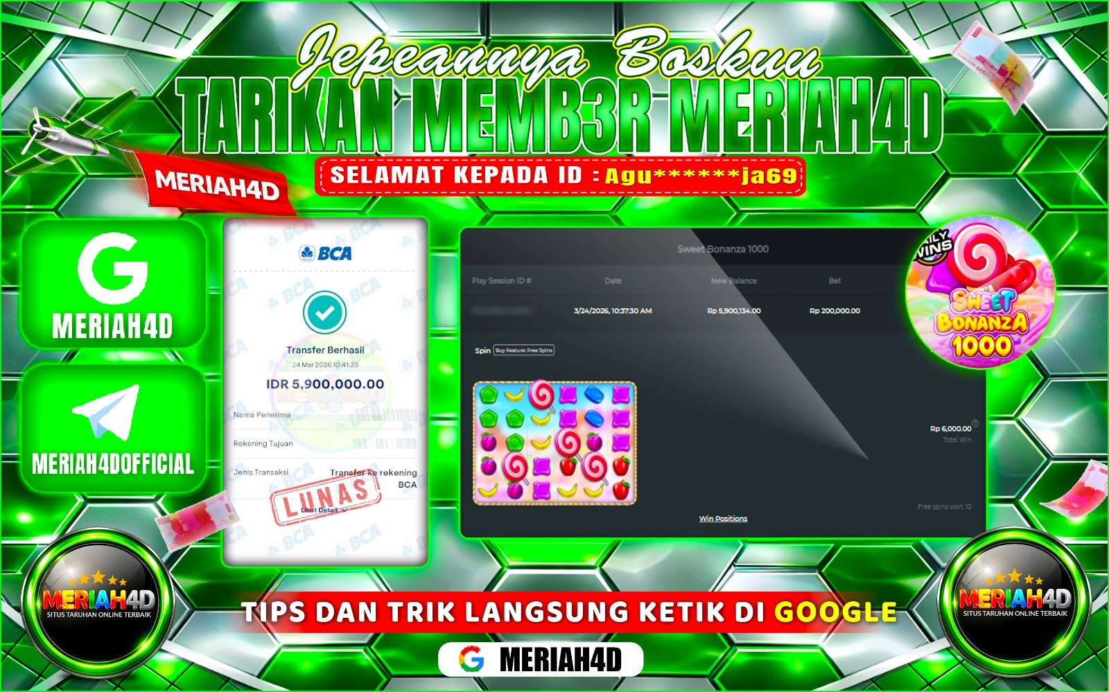 MERIAH4D Bukti Kemenangan SLOT SWEET BONANZA 1000