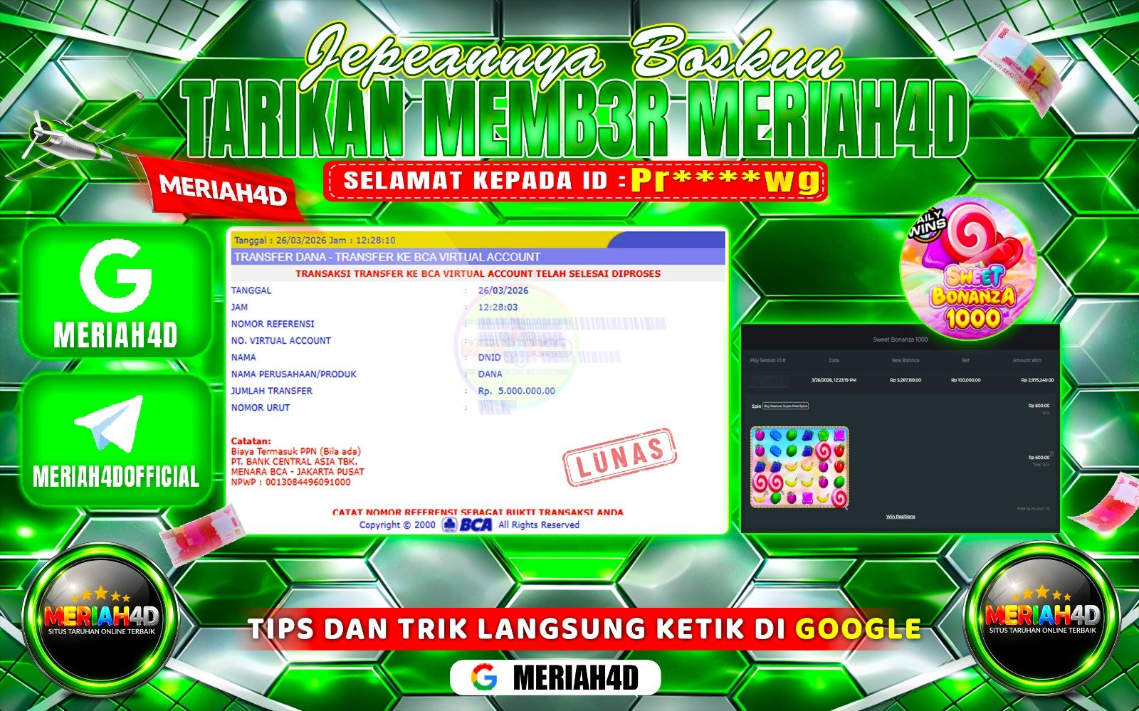 MERIAH4D Bukti Kemenangan SLOT SWEET BONANZA 1000