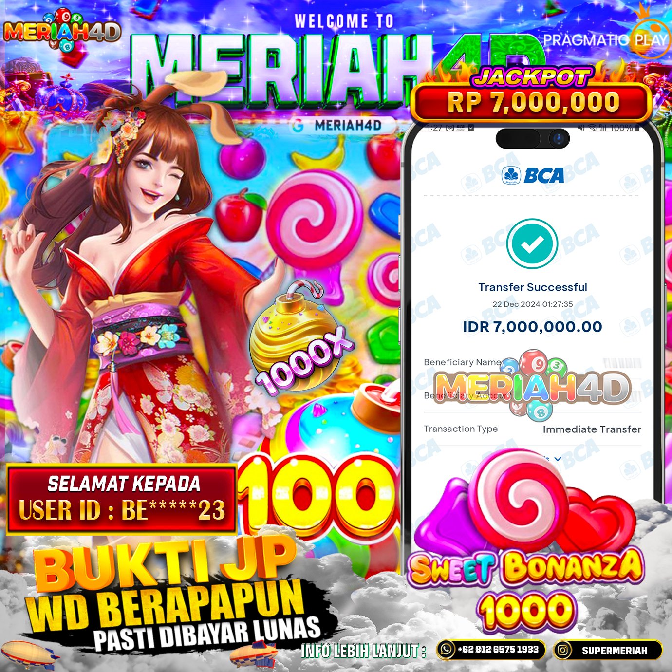 Selamat Kepada ID : BE***23 Atas Withdraw Rp. 7.000.000 Juta Hari ini. Ditunggu Withdraw Selanjutnya dan ajak juga teman temannya bergabung di Meriah4d