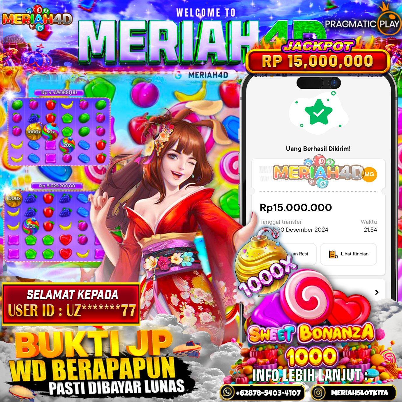 Selamat Kepada ID : UZ*****77 Atas Withdraw Rp. 15.000.000 Juta Hari ini. Ditunggu Withdraw Selanjutnya dan ajak juga teman temannya bergabung di Meriah4d