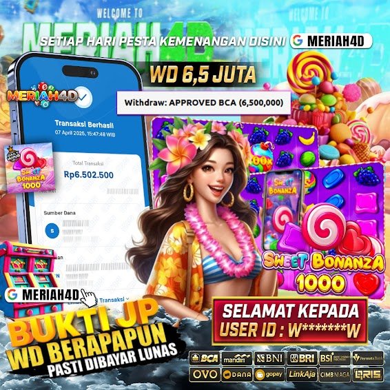 Selamat Kepada ID : W*****W Atas Withdraw Rp. 6,500,000 Juta Hari ini. Ditunggu Withdraw Selanjutnya dan ajak juga teman temannya bergabung di Meriah4d