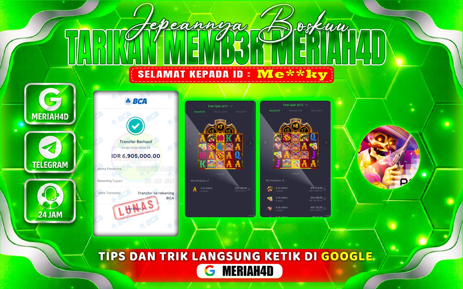 Selamat Kepada ID : Me**ky Atas Withdraw Rp. 6.905.000 Juta Hari ini. Ditunggu Withdraw Selanjutnya dan ajak juga teman temannya bergabung di Meriah4d