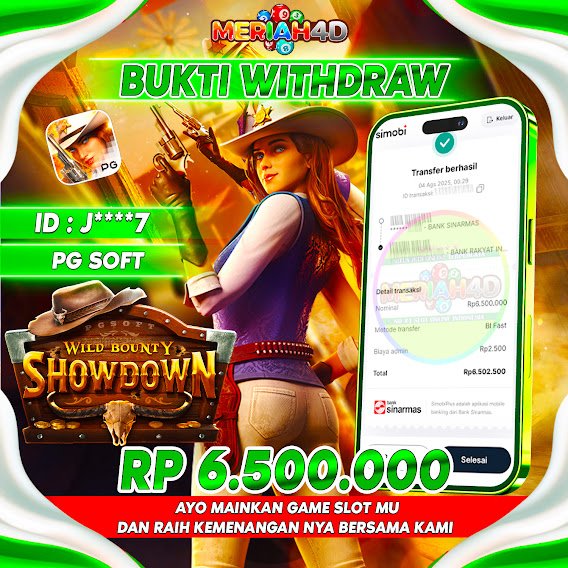 Selamat Kepada ID : J****7 Atas Withdraw Rp. 6.500.000 Juta Hari ini. Ditunggu Withdraw Selanjutnya dan ajak juga teman temannya bergabung di Meriah4d