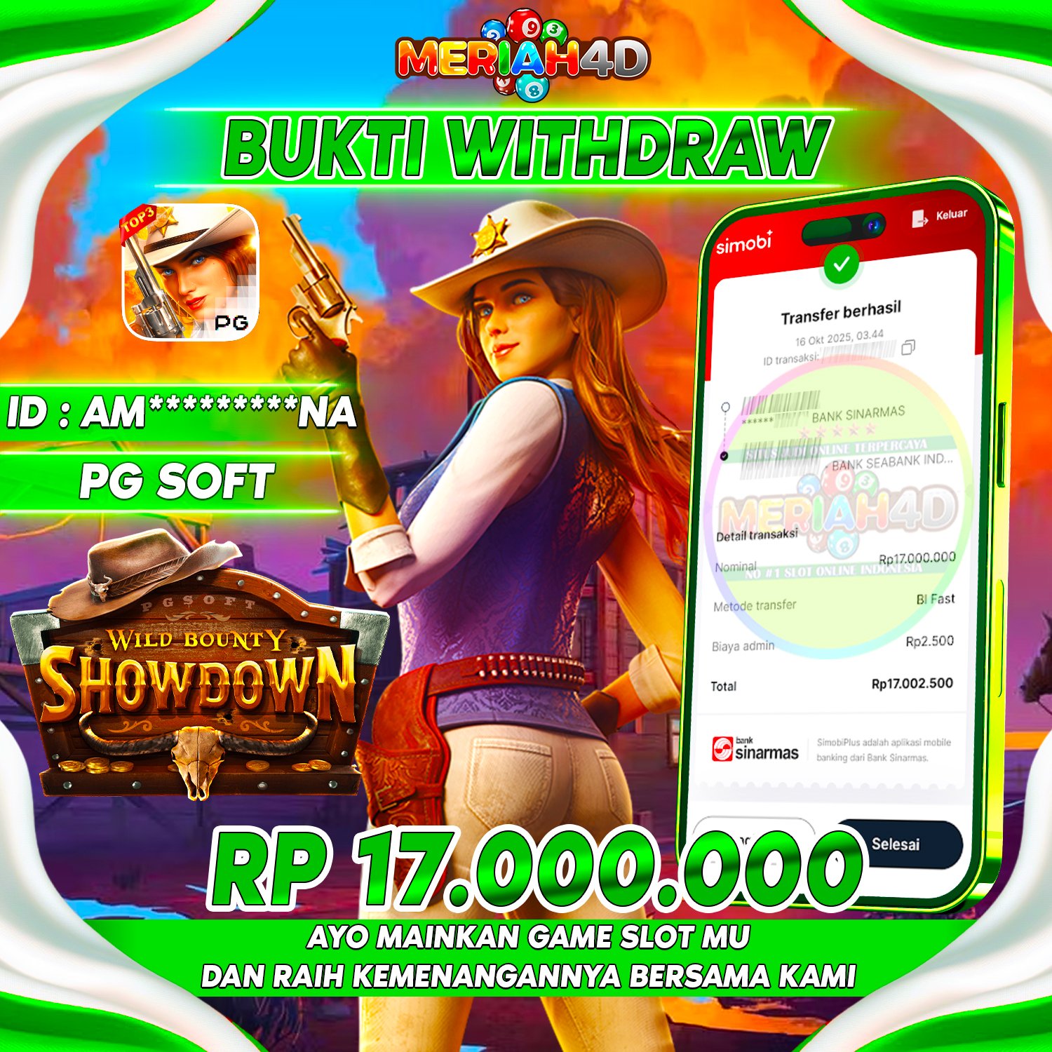 Selamat Kepada ID : AM********** *NA Atas Withdraw Rp. 17.000.000 Juta Hari ini. Ditunggu Withdraw Selanjutnya dan ajak juga teman temannya bergabung di Meriah4d