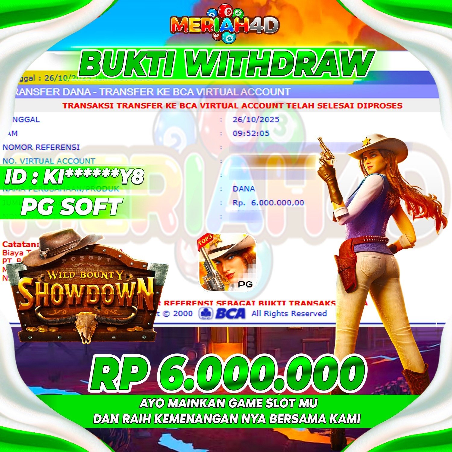 Selamat Kepada ID : KI******Y8 Atas Withdraw Rp. 6.000.000 Juta Hari ini. Ditunggu Withdraw Selanjutnya dan ajak juga teman temannya bergabung di Meriah4d